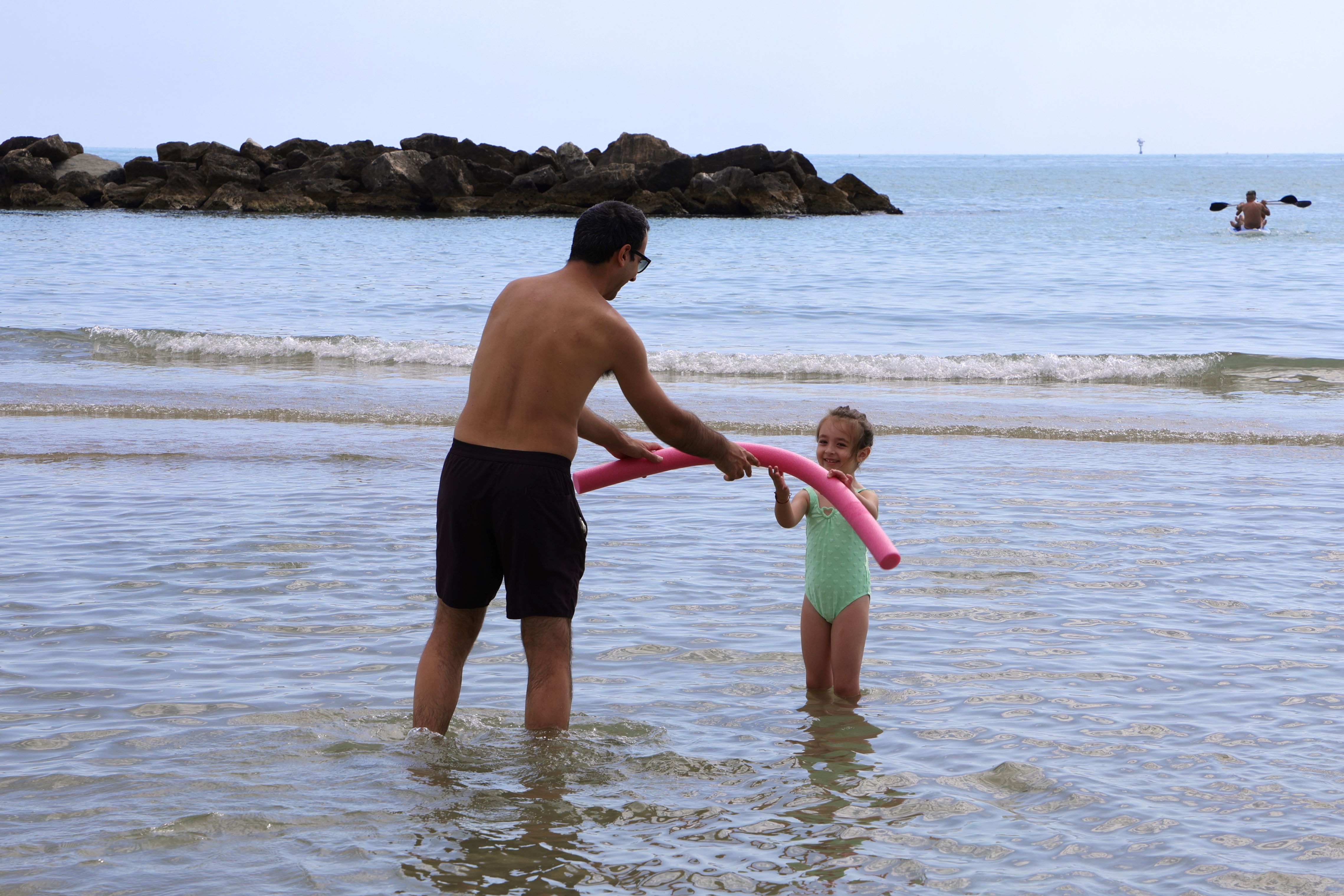 La sabbia è calda e soffice, il mare tranquillo e pulito perfetto per le famiglie con i bambini e per chi ama l’acqua, ma preferisce viverla in totale sicurezza. Eccoci sulla spiaggia di Cupra Marittima proprio di fronte al residence “I Delfini”. Li separa la ferrovia, ma un pratico sottopasso situato di fronte rende agevole il collegamento.