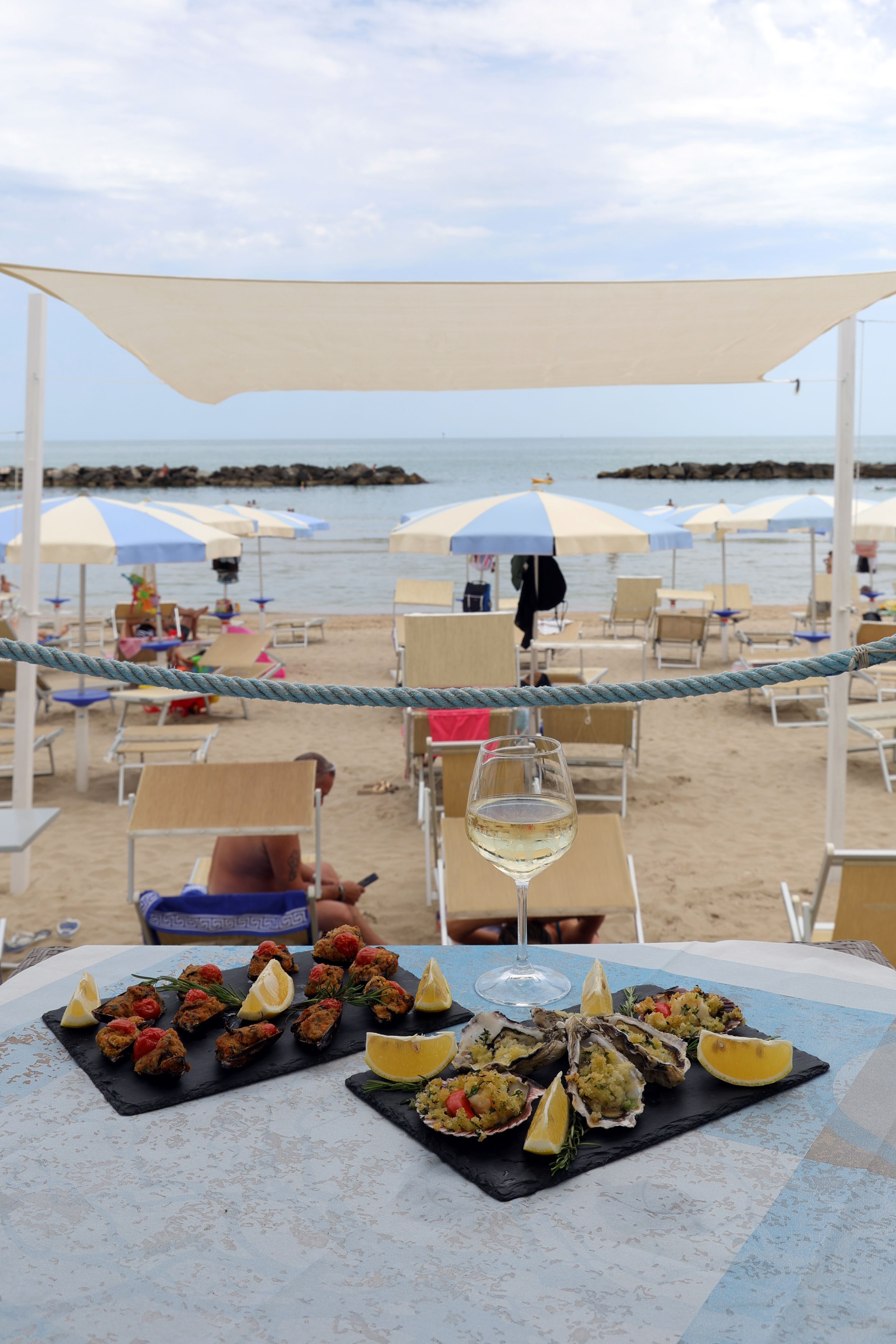 Vengono serviti pasti a base di verdure, carne e naturalmente di pesce. Per chi volesse mangiare sotto l’ombrellone è presente il servizio di asporto anche di piatti caldi.