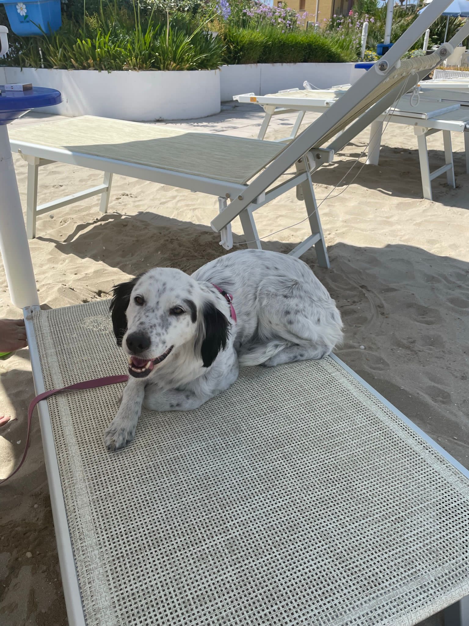 В нашем пляжном заведении Шале Альта Мареа, где под специальными зонтиками можно загорать и наслаждаться море в компании вашего друга-собаки.